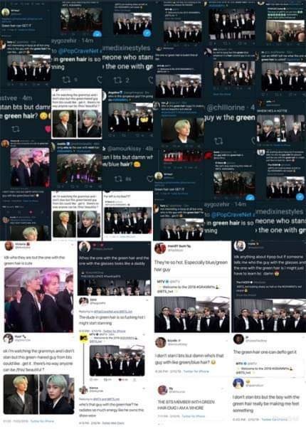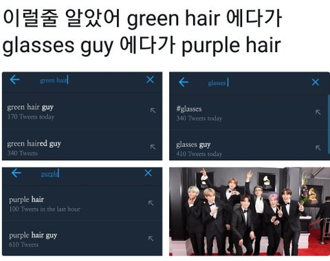 그래미에서 초록머리하고 난리난 방탄 뷔