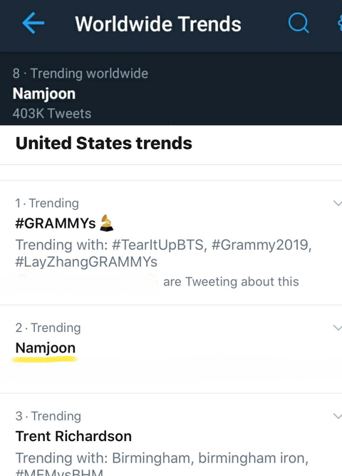 전세계 실시간 트렌드 8위, 미국 실시간 트렌드 2위