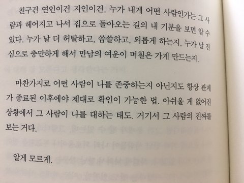 모든 게 종료된 이후에서야 그 사람이 나를 대하는 태도를 보고 느낄 수 있는것같아..
