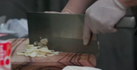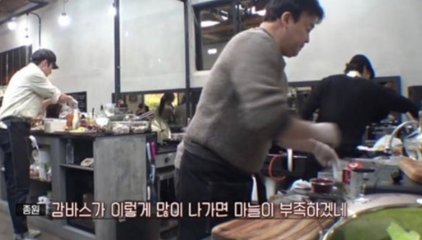 감바스가 잘 팔리니까 미리미리 마늘도 썰어 놓는 알바생