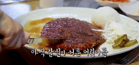 ㅋㅋㅋㅋ아이들 돈가스 잘라 주는 건