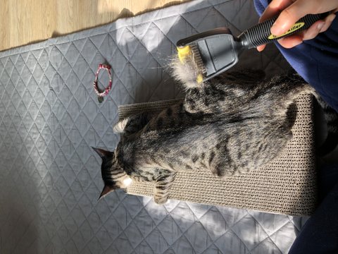 햇빛 받으시면서 털도 빗어 드리고..