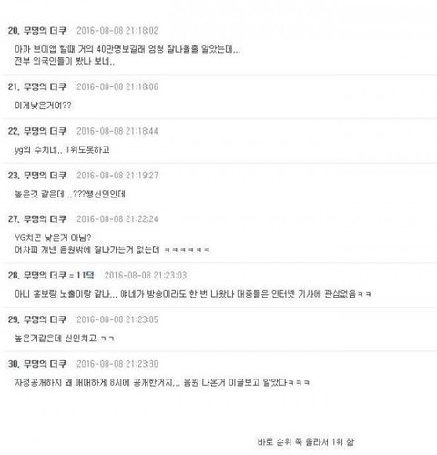 바로순위 쪽 올라가서 1위 ㅇㅇ 심지어 뮤비 2일전에 먼저 풀지도 않앗는데 풉