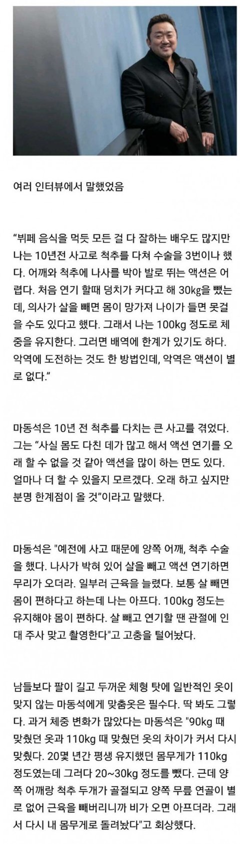 마동석이 체중 100kg를 유지하는 이유