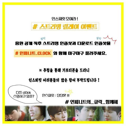 #인피니트_클락_함께해 #인피니트_CLOCK 이벤트용이긴 하지만 홍보용으로도 사용되기 때문에 음원공개 직후 실트오를수 있게 참여합시다~
