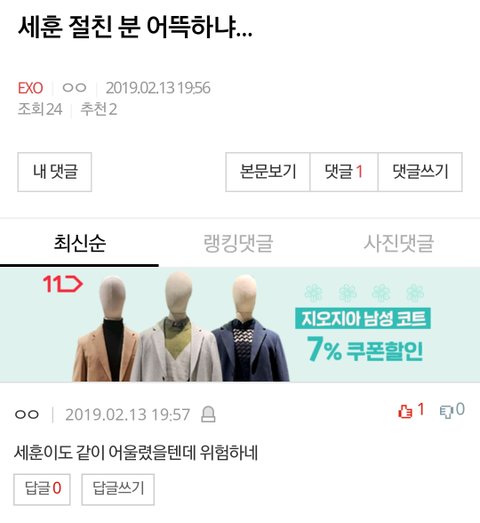 세훈 절친 분 어뜩하냐...
