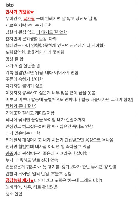 나는 시간 차 두고 총 세 번 했었는데 셋 다 istp 나옴 ㅋㅋ