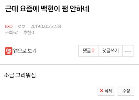 엑소 요즘 참 컴백안하네 컴백 조금 그리워짐 이라고 글 올려줘