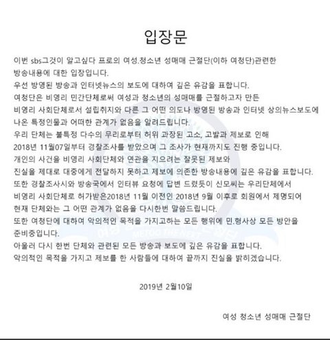 2월9일 그것이알고싶다 방송이후 여청단(미투더넥스트)의 공식 블로그에서 입장문을 읽게 되었습니다.
