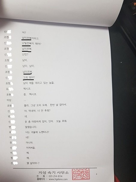 또한 속기록에 나온 (가명)조현x 과 (가명)신정우는 여성의 성기를 전복 이라 표현하며 남미계 멕시코 외국인 여자의성기를 남미전복 이라고 아무렇지않게 부르고 있습니다.
