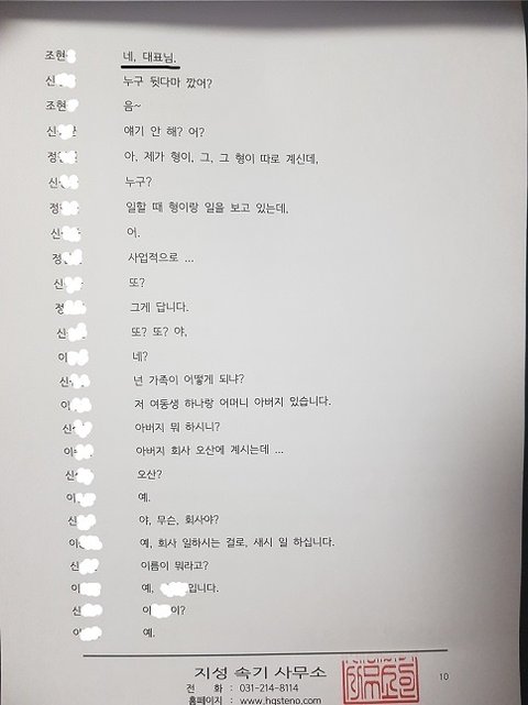 속기록에도 현재대표자 (가명)조현x이 (가명)신정우를 향해 대표님 이라고 부르는맥락이 나옵니다.
