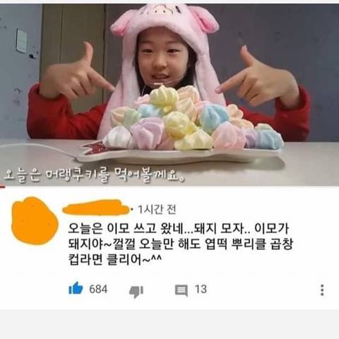 돼지 모자를 쓴 띠예의 모습을 본 한 네티즌