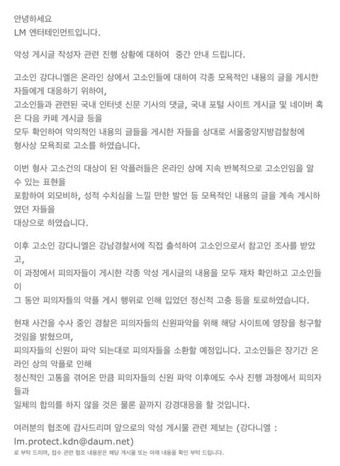 야 강다니엘공카에 고소공지떴는데 이거봐