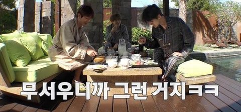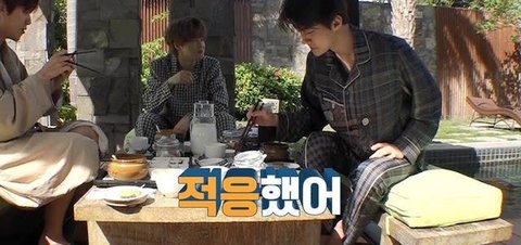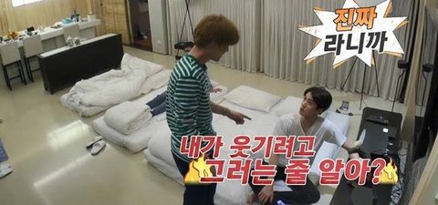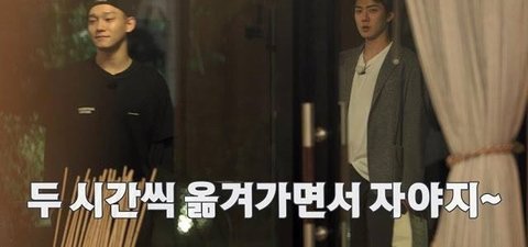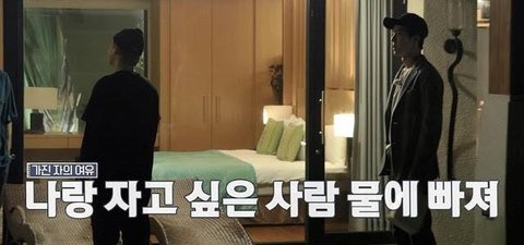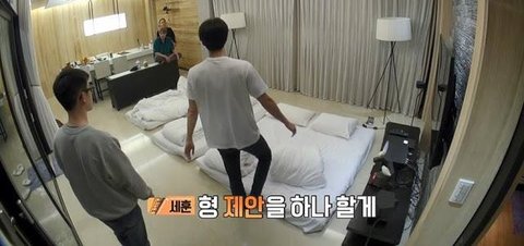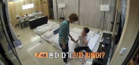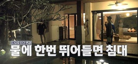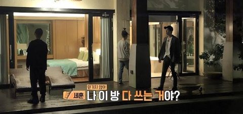 근데 세훈이가 물에 뛰어들면 방 같이 쓰게 해준다고 딜을 함