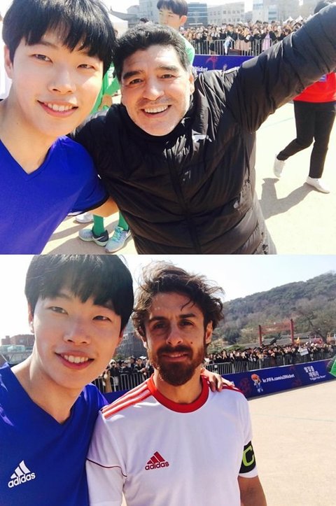 마라도나와 아이마르랑도 축구 하고 기념 사진 찍고