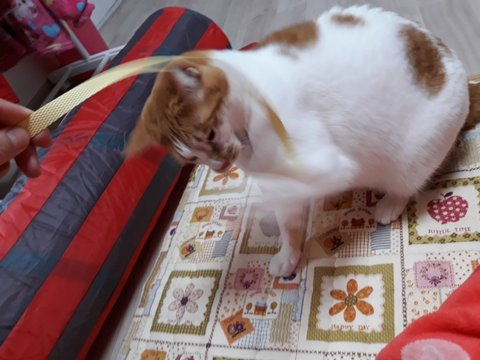 혼자서도 잘 가지고 놀고 집사가 흔들어줘도 좋아함.