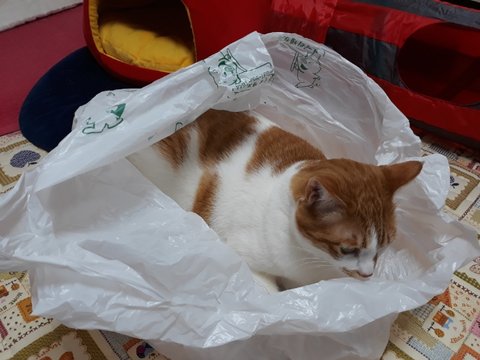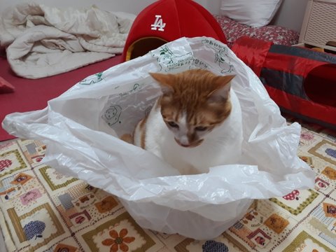 비닐이 너무 사랑한 나머지 비닐안에서 앉더니 나올 생각을 안함.