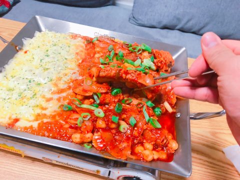 매운찜 등갈비를 치즈에 푹!! 찍어 먹는데 와...존맛탱..ㅋㅋ