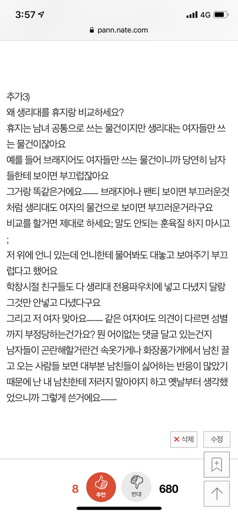 나 전에 생리대 남친한테 보이기 부끄럽다고 글 쓴 애야ㅠㅠㅠㅋㅋㅋㅋㅋㅋ