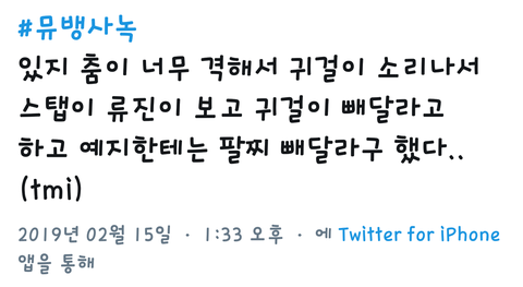 과격한 춤추면서 노래부르니깐 귀걸이 부딪치는 소리 들어가서 뮤뱅스텝이 빼라함 ㅋㅋㅋ