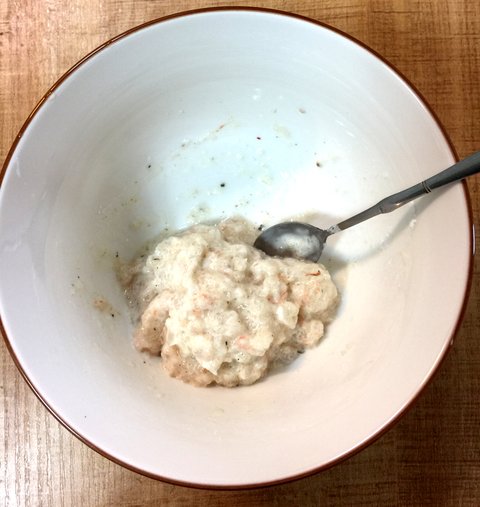 작은새우를 다진후에 소금 후추 미림 전분을 넣고 섞어주세요.