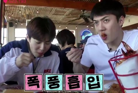 세훈이 먹을 때 또 눈썹 갈매기됐다ㅋㅋㅋㅋㅋㅋ
