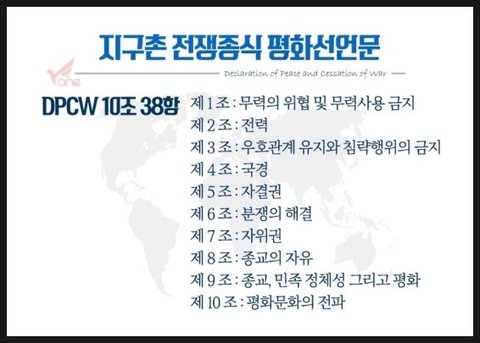 지 구 촌 전 쟁 종 식 평 화 선 언 문 DPCW 10조 38항