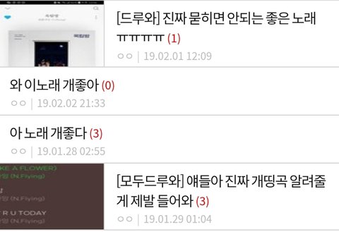 노래 좋다고 제발 한번만 들어보라는 글이 거의 다임 ㅠㅠㅠ