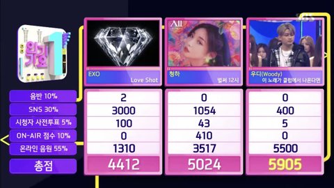 우디 인기가요에서 1위함;;;