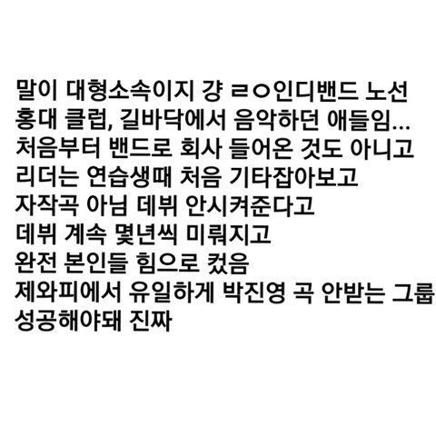 평소에 밴드 노래 좋아해서 유튜브에서 공연하는 거 찾아보고 그러는데 데이식스 얘네 노래 가사 대박이더라 진짜 개아련하고 장난 없음,,, 이 곡 내 기준 최고로 착한 전남친 곡 ㅇㅇ 검색해 보니까 소속사 jyp던데 왜 안 떴는지 모르겠어 ㅠ 할튼 노래 좋으니까 한 번씩만 들어봐 묻히긴 너무 아까워서 가져옴
