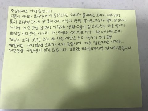 오늘 저희집 대문 앞에 쪽지가 하나 붙어있었습니다.