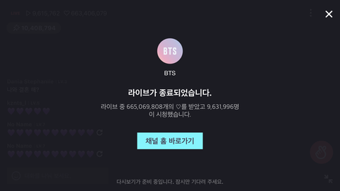 생일기념 라이브인데 960만명 시청, 하트수6억6천5백만..