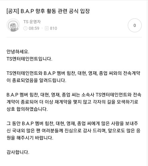 B.A.P가 없어지는 게 정말 가슴이 아프다 ㅠ