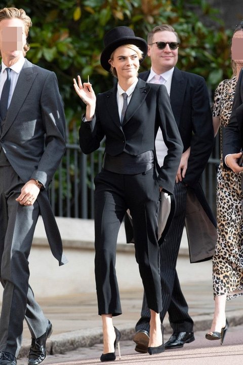 근데 카라는 정장과 샤넬모자를 쓰고 결혼식에 참석함