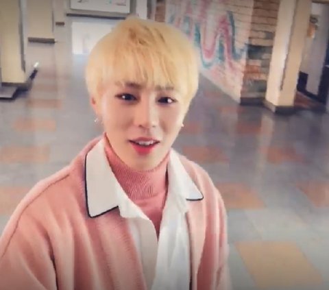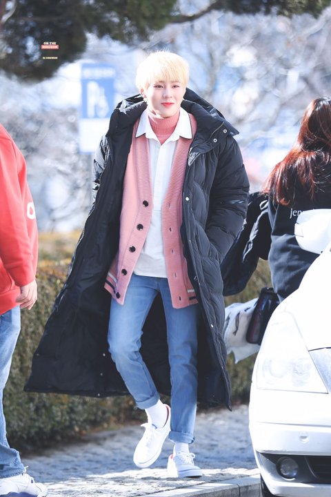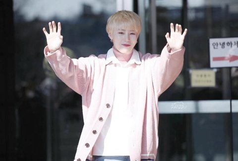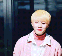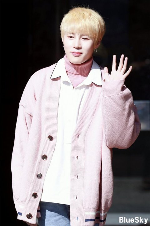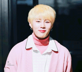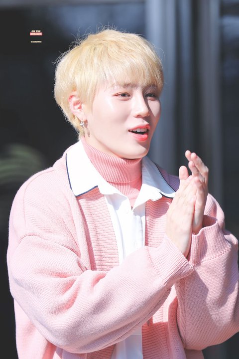 노란 머리에 분홍 스웨터 착장한 하성운 ㅜ 예뻐 ㅜㅜ