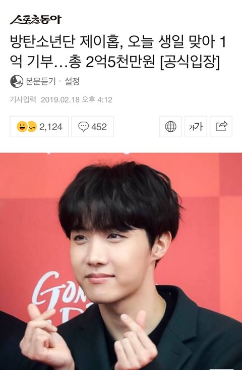 우리호비호비.....인성뭐야.......호석이 마음씨좋은건 다 알구있었지만..생일기념 기부라닛..!!!! 착한호비ㅜㅜ 세상사람들 다 알아야돼ㅠㅠㅠ줴이홉씨...얼굴 잘생겨...춤잘춰....영앤리치앤핸섬만으로도 미치겠는데....마음씨까지 좋다니....이러기 있기없기...?