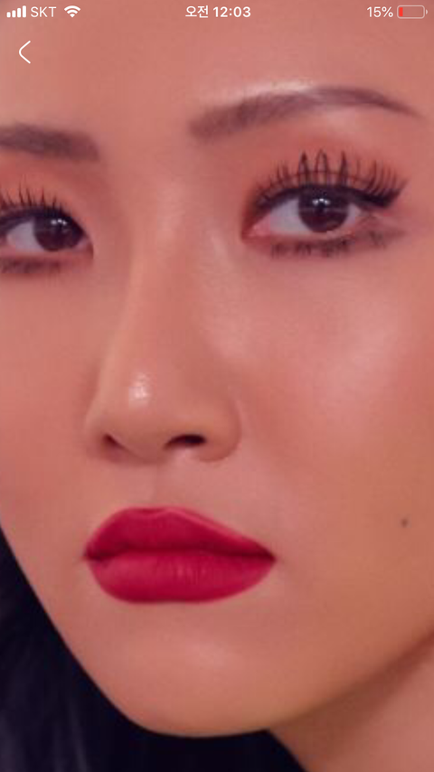 보통 많은 사람들은 윗입술 라인에 딱 맞게 하트? 모양으로 그리는 데 화사는 되게 둥글둥글하게 그림 !! 뭔가 특이하고 신기해 사진은 화사 멜론 프로필 ?에서 캡쳐한 거야 !!