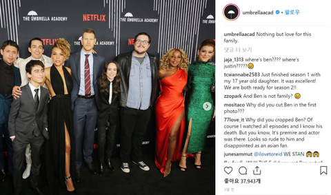드라마 공식 계정에는 한국계 배우가 잘려서 업로드 됨
