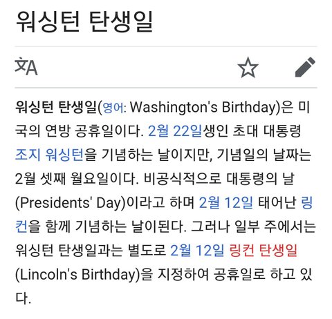 원래 미국에서 초대 대통령 기념하던 공휴일인데