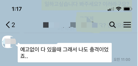 겁자기 해고당하여 수강생들의 카톡입니다.
