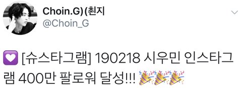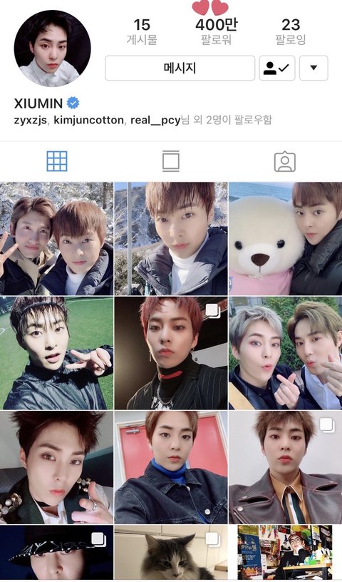 어젯밤에 달성한것같은데 늦었지만 시우민 400만 팔로워 ㅊㅋㅊㅋ!!!