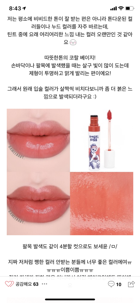 초4부터 틴트발랏다 그 후 n년동안 패션뷰티에 미쳐삼 내 전공은 ㄹㅇ티안나는데 지워보면 아는 화장ㅋㅋ 고민쓰고가라 근데 난뷰튜버도 뭣도아니기때문에 틀릴수도잇고 그르타