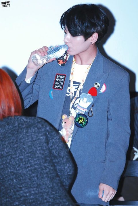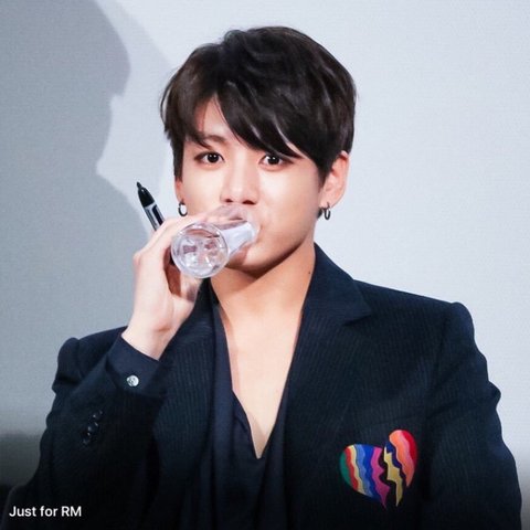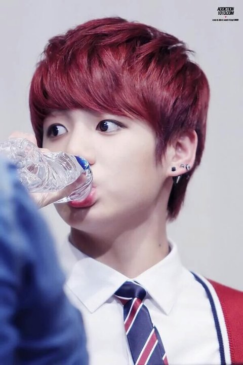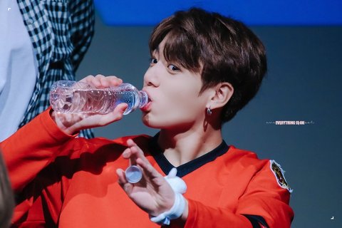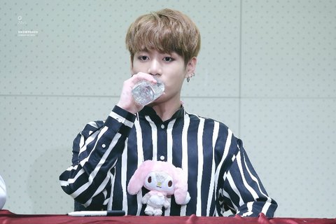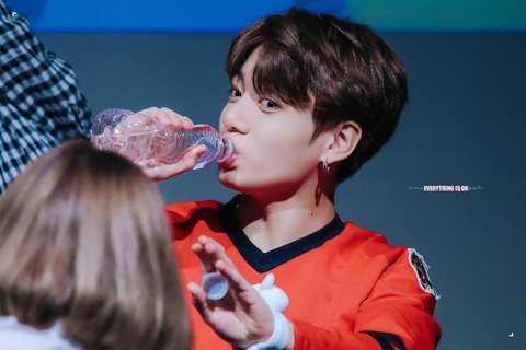 물을 짜먹는 정국 애기 때 버릇이 아직 남아서라고...