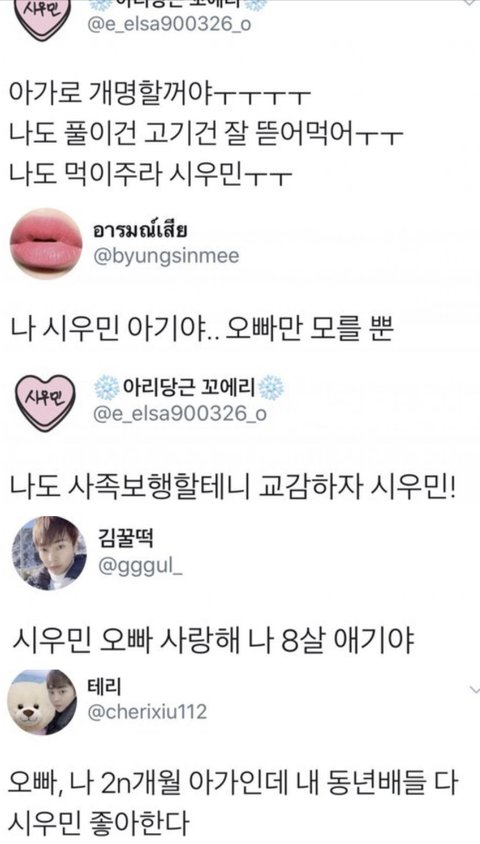 짹 시우민팬들 단체로 주접
