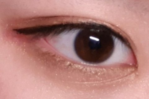 아이라인으로 속눈썹점막부분쪽으로 눈 윗부분을 덮듯이 그려주고