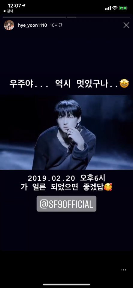 찬희군과 함께 스카이캐슬로 열연했던 혜윤양도 SF9의 컴백무대를 응원해줬네요