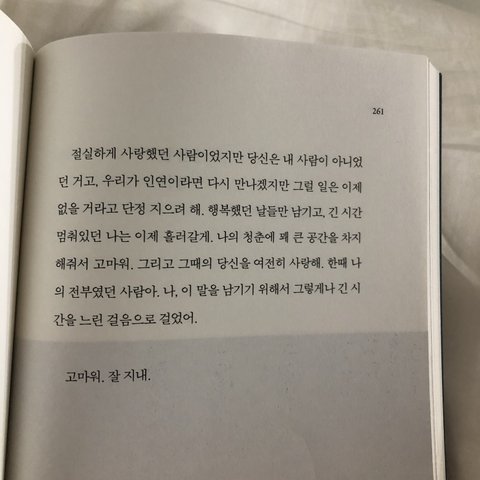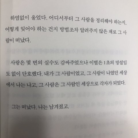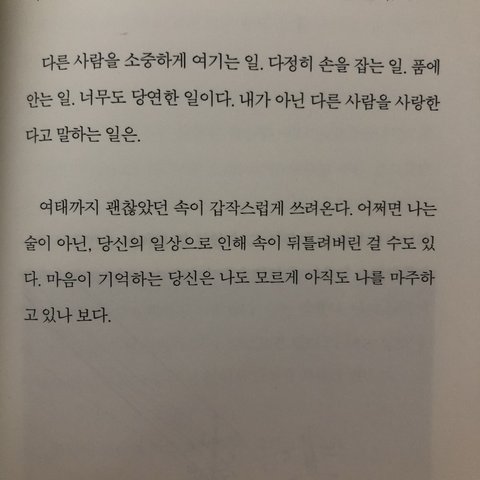 그게 작년 12월인데 오늘 그 책을 다시 보는데 아픈게 그 사람때문이 아니라 그때 아파한 내가 안쓰러워서 아프더라구요.