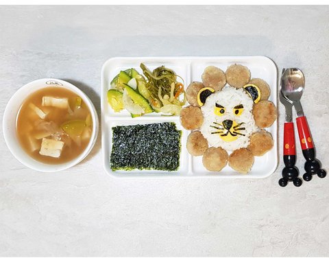 최애된장국과 미니돈까스로 만든 사자