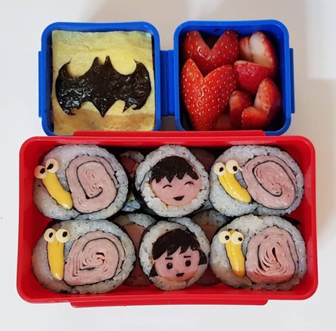 도시락통자체가 작아서 뭐 제대로 꾸밀수는 없었고, 배트맨지단아래 일반야채김밥들이 조금씩들어있어요