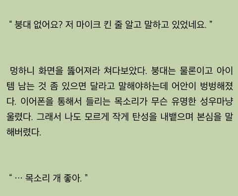 매일 뭐시기한 소설들만 보다가 간만에 소프트 bl 찾음 달달물이고 아이돌 공x게임 스트리머 수 인데 방송키고 배틀운동장(뭔 겜인지 알지^^?) 하다가 둘이 우연히 만나면서 벌어지는 일들이야 게다가 연하공x연상수임 ㅠ 삽질 하긴 하는데 그다지 긴 느낌은 못 받았어